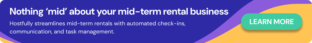 Mid-term rentals are listings offering stays of a month to a year, filling the gap between vacation rentals and long-term leases. They’re usually tailored toward people looking for temporary accommodation.
