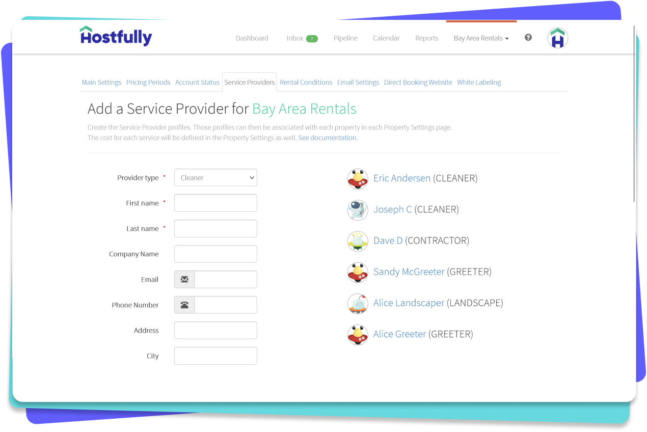 Mit dem einheitlichen Posteingang von Hostfully können Sie auf Nachrichten von Direktbuchungen, Airbnb, SMS und E-Mails zugreifen. Verwenden Sie automatisierte Nachrichten, um Buchungserinnerungen, Anweisungen zum Check-in und Check-out, Zahlungsaufforderungen und mehr zu senden.