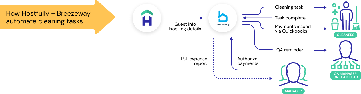 Reservierungsdaten fließen nun automatisch von Hostfully zu Breezeway. Reinigungen werden basierend auf vordefinierten Regeln sofort zugewiesen. Änderungen und Stornierungen werden in Echtzeit aktualisiert. Erinnerungen werden automatisch ausgelöst.