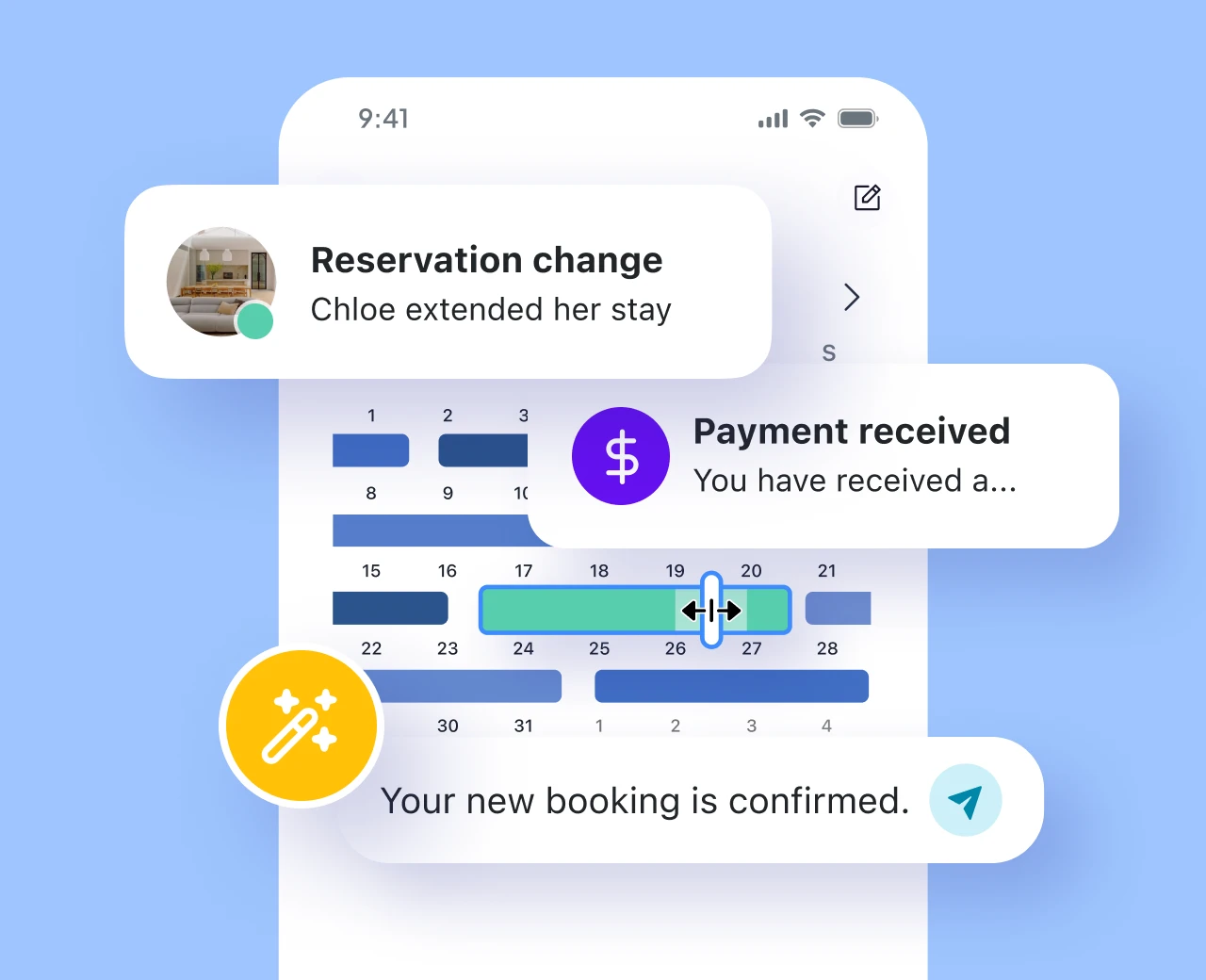 Zahlungen, Nachrichten, Berichte, Check-ins, Preisgestaltung, Gästebewertungen, Team-Workflows und mehr.