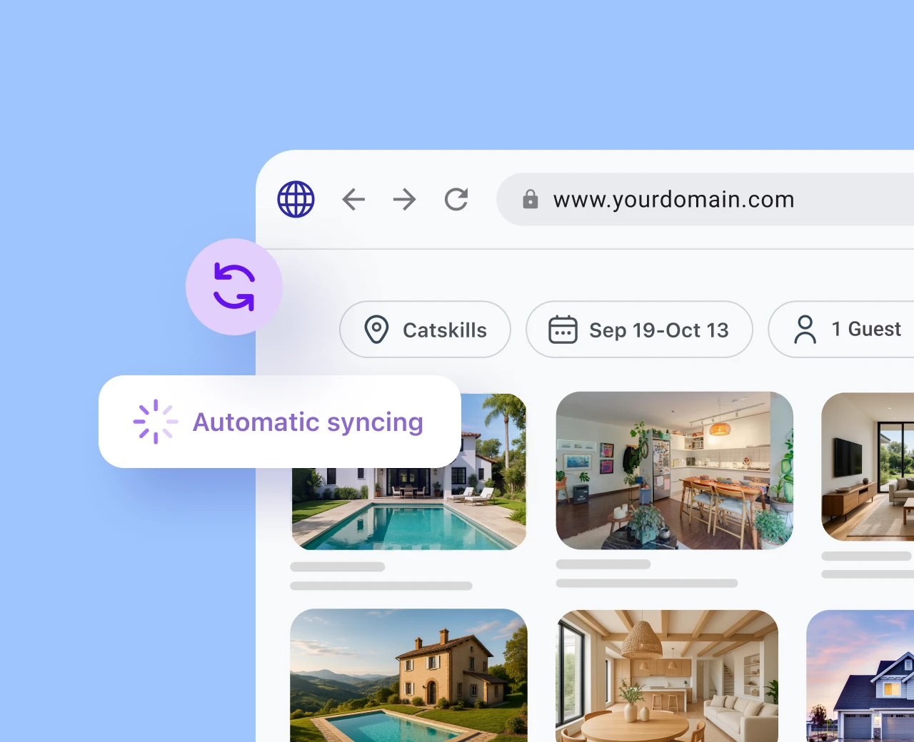 Synchronisieren Sie Ihre Website mit Hostfully, um bessere Abläufe zu erzielen, ohne Ihre bestehende Marke zu beeinträchtigen.