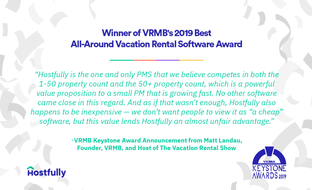 Hostfully wins ‘Best All-Around Vacation Rental Software’ from VRMB Keystone Awards 2019