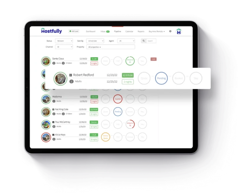 Manage check-ins, check-outs, task assignments, lead responses, and more with the Booking Pipeline. Customers love this feature (and only Hostfully has it!)