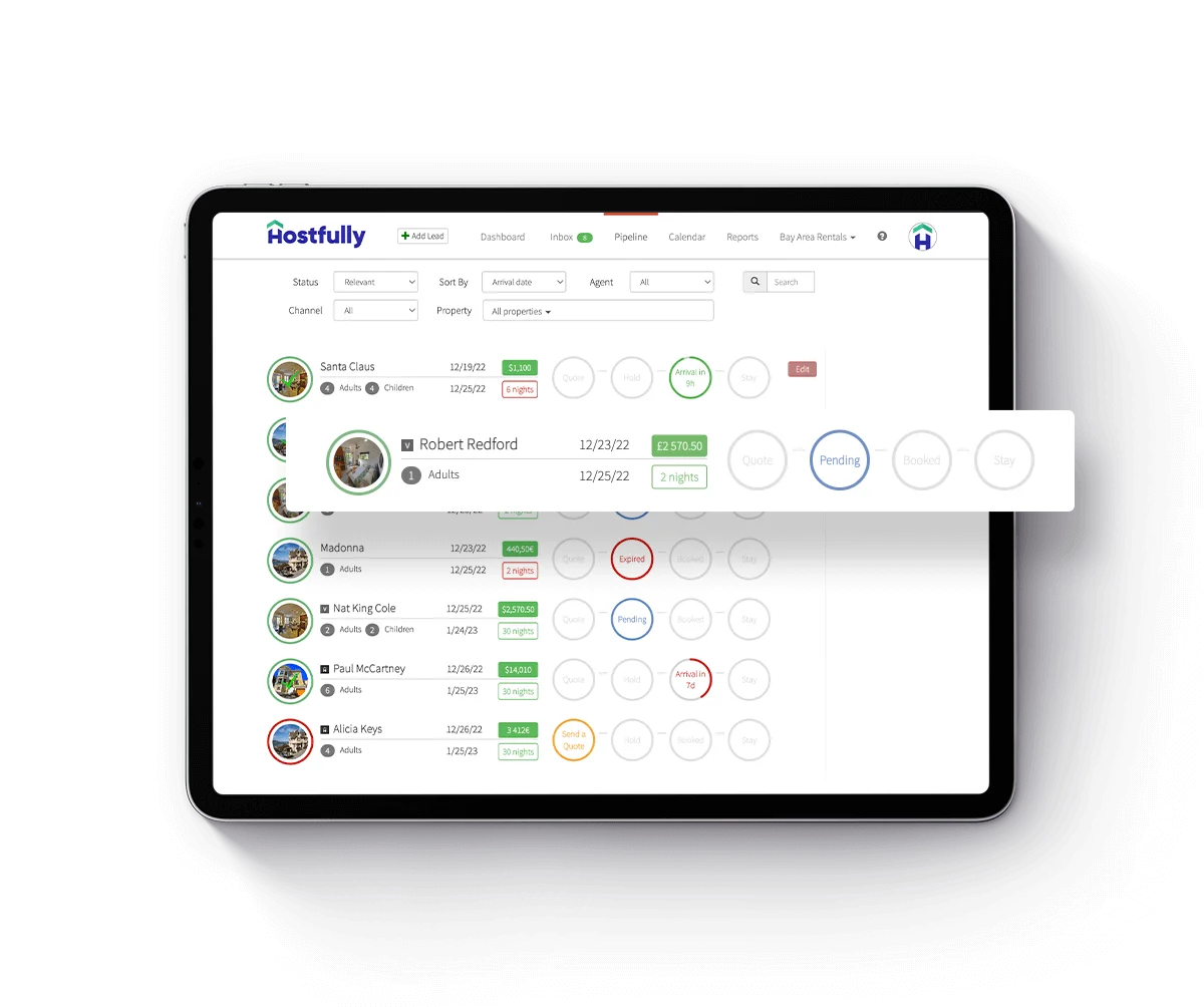 Hostfully takes a different approach by including all the essentials like our unified inbox and booking calendar in our starter plan. All users can also enjoy our unique booking pipeline, which gives you total visibility over the booking process. As you build your portfolio and need more advanced features, you can access advanced tools like our custom branding and AI assistant.
