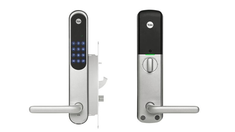 Serratura per porta d’ingresso Yale Unity, bridge Wi-Fi Yale Connect Plus, tastierino smart Yale, kit di retrofit Yale Unity Nexion e dima di installazione Yale Unity (venduti separatamente)
