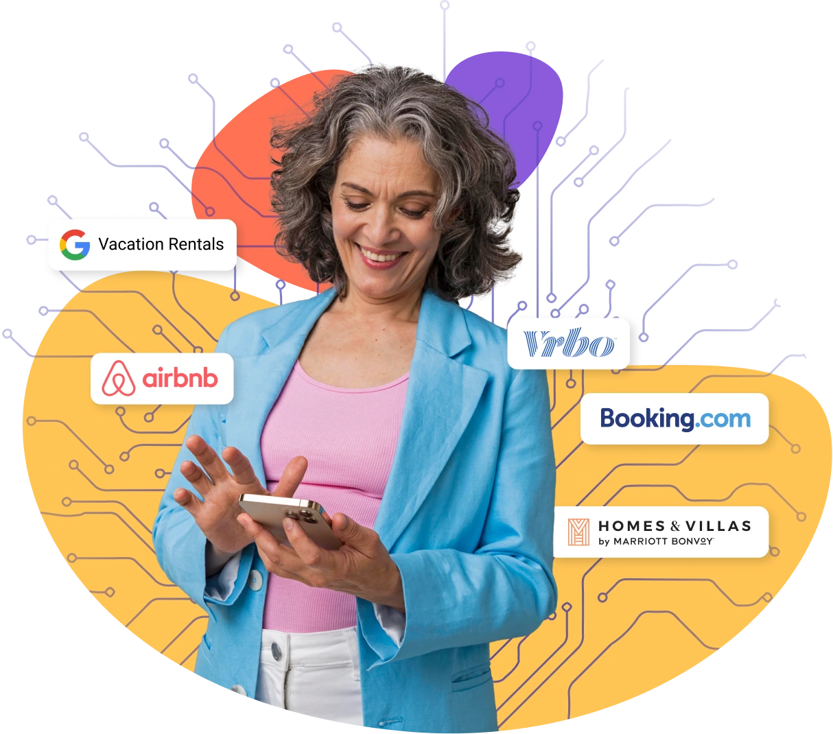List and sync properties on Airbnb, Vrbo, Booking.com, and 50+ other sites and OTAs with direct, reliable, and fast integrations (iCal is also supported).