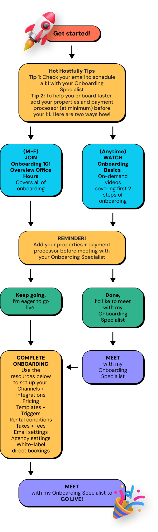 Para uma explicação completa do processo de onboarding, participe nas nossas sessões de grupo ao vivo de Visão geral do Onboarding 101. Para colocar questões sobre o onboarding, participe nas nossas sessões de Perguntas e respostas sobre o onboarding. Este horário de expediente durante a semana é ilimitado para todos os nossos clientes e é ótimo para equipas.
