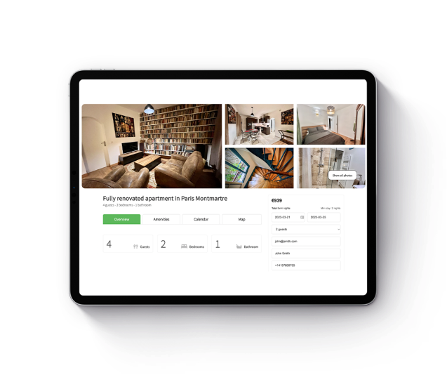- Showcase your rentals beautifully and communicate directly with guests